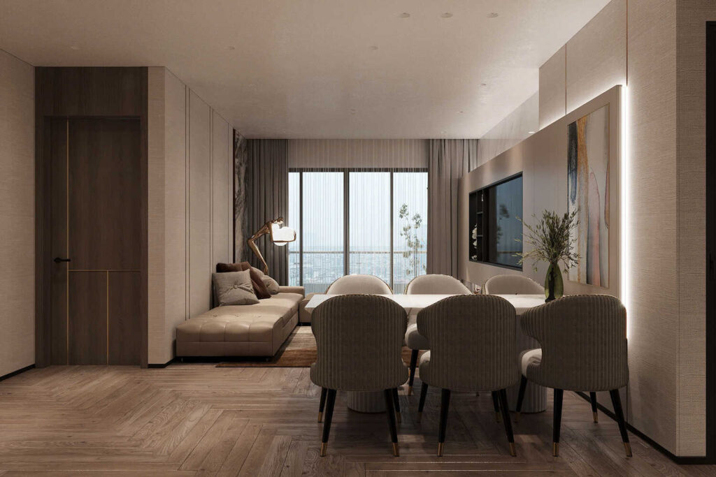 Nhà mẫu Oriental Mansion được thiết kế tinh tế, thể hiện rõ phong cách sống hiện đại mà chủ đầu tư OSI Holding hướng đến. Không gian được bố trí khoa học, tận dụng tối đa ánh sáng tự nhiên và gió trời, mang lại cảm giác thoáng đãng, thư giãn cho gia chủ. Tông màu chủ đạo trang nhã kết hợp cùng vật liệu cao cấp như sàn gỗ, kính tràn, và nội thất tinh giản tạo nên tổng thể hài hòa, sang trọng. Khu vực phòng khách, bếp và phòng ngủ được sắp xếp hợp lý, đảm bảo tính riêng tư nhưng vẫn kết nối liền mạch. Khi bước vào nhà mẫu Oriental Mansion, khách hàng có thể cảm nhận rõ sự tỉ mỉ trong từng chi tiết thiết kế – từ chất liệu, ánh sáng cho đến không gian sống, tất cả đều thể hiện chuẩn mực của một căn hộ cao cấp.